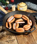 Die Wildschwein-Prinzkorv ist ein wirklich hochwertiges Wildprodukt. Im Gegensatz zu den meisten Wildschweinwürsten, bei denen Schweinefleisch beigemischt wird, enthält diese Wurst kein Schweinefleisch, sondern ausschließlich Fleisch vom Wildschwein. Das macht unsere Wildschweinwurst nicht nur geschmacksintensiver als andere Prinzkorv, sondern auch gesünder und klimafreundlicher.