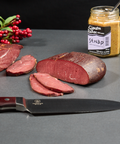 Unser kaltgeräuchertes Rentier-Oberschalenfleisch ist eine exklusive Delikatesse, die traditionelles Handwerk mit erstklassigem Rohmaterial verbindet. Die Oberschale vom Rentier ist für ihre feine Struktur und den natürlich milden Wildgeschmack bekannt. Durch die schonende Kalträucherung entwickelt sie eine vollmundige, elegante Rauchigkeit, die das Fleisch auf ein ganz neues Niveau hebt. Die Oberschale reift im Rauch von Erlenholz, erhält ein etwas ausgeprägteres Raucharoma und ist zudem etwas saftiger als viele andere geräucherte Teilstücke.