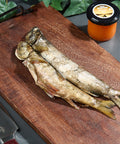 1-2 ausgenommene, ganze Fische pro Packung.